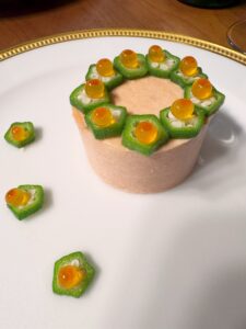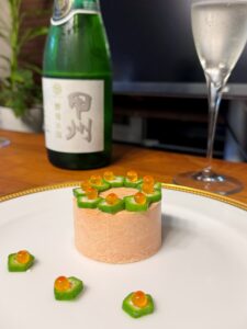 スポンサーリンク アラスカサーモンのムース(その2) 2025/9/27 洋食, 酒, フレンチ, ワイン・泡 サーモンムースにちょっとデコレーション。 オクラスライスに一粒ずつイクラをのせてみた。 最初のVersionはイクラたっぷりだったので、 濃厚に感じたけど、今回はオクラのおかげで ちょっとあっさり目に感じた。
