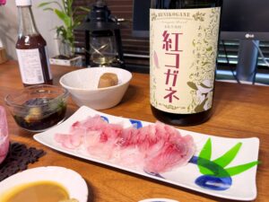 合わせた芋焼酎はかみさんが大好きな紅コガネ。