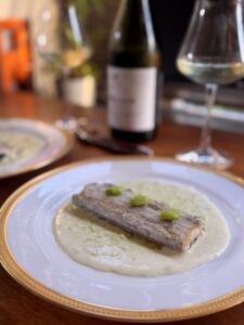 平目のカルパッチョ&太刀魚のソテー レモンとブロッコリーのクリームソース