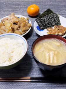 玉ねぎと揚げの味噌汁で
