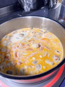 車エビ、牛乳を加えてしばし煮込み、