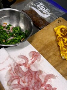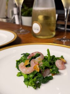 菜の花と甘えびでカルパッチョ風のあえ物をつくることにした。