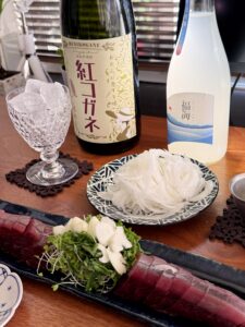 今回は鯉の洗い、菜の花など食材をたっぷり買って来た。