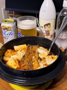 翌々日はちょっと贅沢に黒毛和牛の切り落としを使った豆腐チゲ。