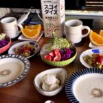 朝食の変遷 やっとたどりついたダイエット&健康朝食 オールブラン/雑穀米ご飯、たっぷり野菜、ヨーグルト、豆乳「すごい大豆」、自家製マヨネーズ、味噌汁/レコルトでつくるスープ、よもぎ茶/緑茶 2026/4/9 朝ごはん 関西宅での独り朝食。 独りでも健康的な朝食を試行錯誤していた。 お茶はよもぎ茶か緑茶 まずはお茶をゆっくり飲む。 ご飯は無し...