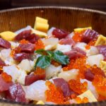 天たつの逸品(平目昆布〆、若狭ふぐ昆布〆、甘えび昆布〆、生雲丹、小鯛ささ漬、雲丹あわせ甘えび)de 鍋島 特別純米酒、大晦日のばらちらし de 磯自慢純米吟醸 and 彩來 純米吟醸